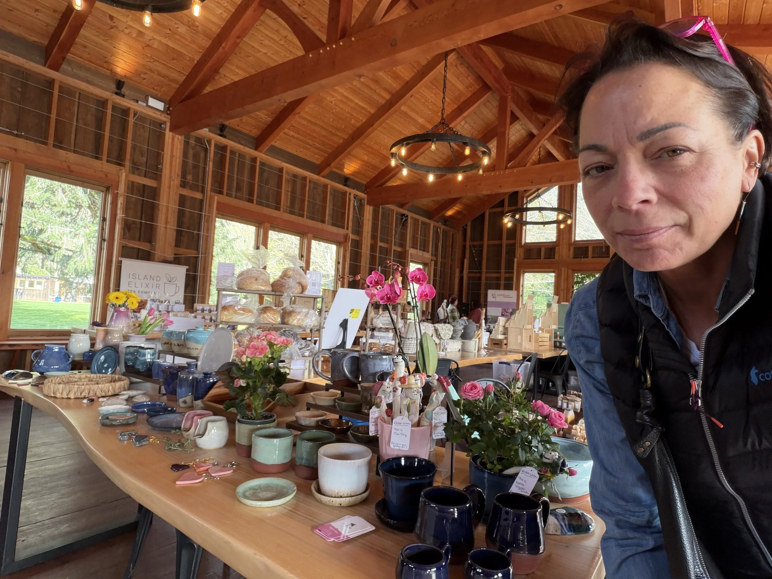 Sue makes all her pottery in her home studio. The studio is small but bright with views of the Juan de Fuca Strait, part of the Pacific Ocean.
